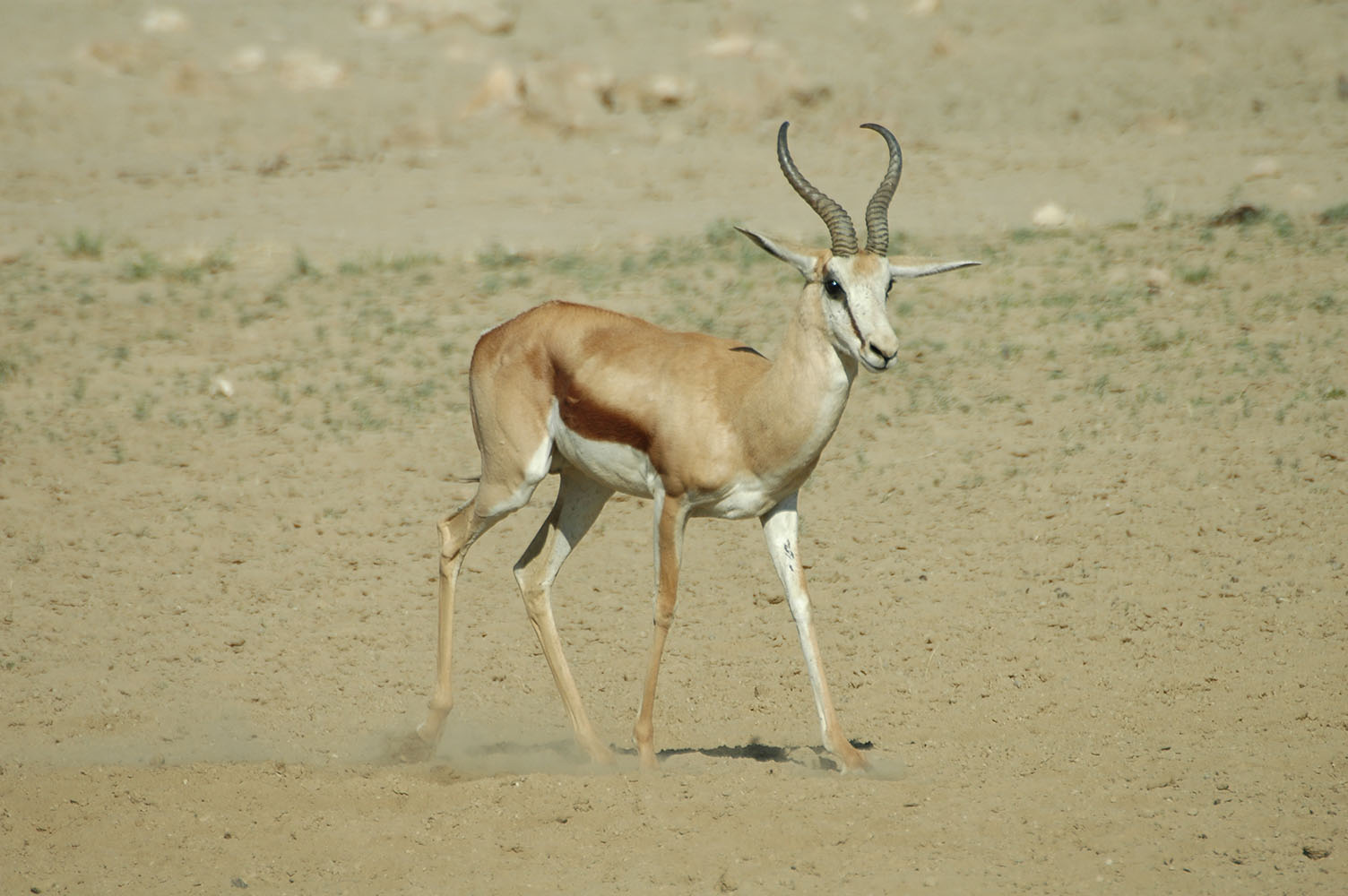 The Kalahari is often referred to as a desert but this is not correct. Most of it is sandveld and flat thornveld. There are small areas of sand dunes in the south and in these the Kalahari comes closest to being a desert. We prefer to refer to the Kalahari as a ‘Thirstland’ or ‘Semi-arid biome’ rather than a desert as surface water is a rare commodity except around the Okavango delta, the Okavango- and Kwando Rivers in northern Botswana and Angola, and the Orange River in the extreme south in South Africa.